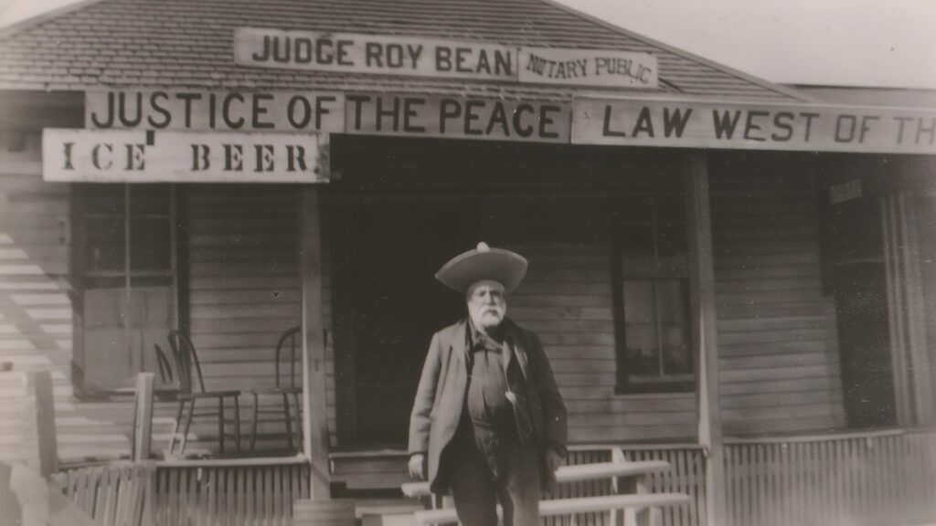 The bar’s name paid tribute to Phantly Roy Bean Jr., a 19th-century saloon-keeper and self-proclaimed “Law West of the Pecos.” In the 1800s, Bean held court in a makeshift saloon courthouse along the Rio Grande in southwest Texas. Known for bending the law—and pocketing fines—he became a legend in frontier justice, even though he only sentenced two men to hang, one of whom escaped.