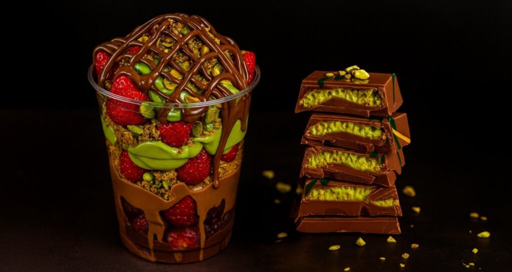 The “Dubai chocolate” bar began as a boutique sweet in the United Arab Emirates. A rich milk chocolate shell cracked open to reveal pistachio cream and crunchy kataifi pastry. The mix of textures and flavors turned it into a social media storm, pulling millions of views and long lines at dessert shops from London to Los Angeles.