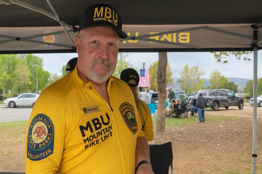 Richard Probst, volunteer training coordinator for the Mountain Bike Unit, discusses the group's role at the recent Cops N’ Cruisers event in Simi Valley. The MBU set up an outreach booth to recruit new volunteers. Image credit: Sylvie Belmond