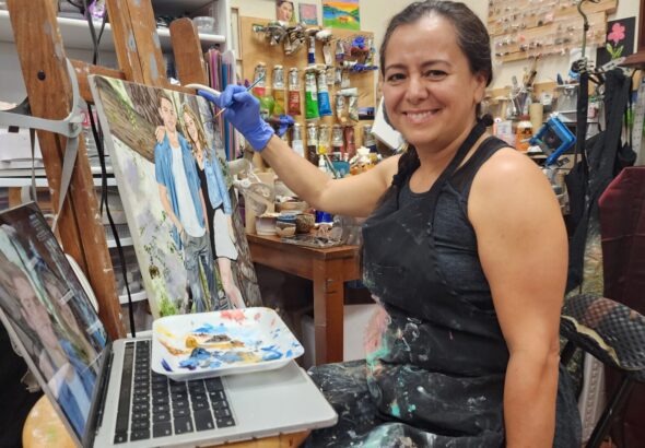 image credit: Sylvie Belmond Artist Ruth Villa smiles as she works on a new painting inside her Simi Valley studio, Oct. 10. “There’s a feeling that is like no...